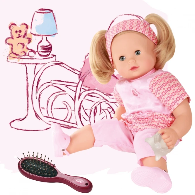 Kleine Maxi Muffin draagt ββvandaag haar hippe zomeroutfit. De pop is echt modieus gekleed, dus ze kan nu naar buiten of gewoon genieten van lief gekleed zijn.Β Maxi Muffin draagt ββhaar roze linnen broek met een geweldige blouse met een hartdetail met lovertjes erop. Ze zette ook een haarband op met hetzelfde modieuze ontwerp.Β Ze werken briljant samen.Β Altijd modieus en up-to-date!Β Haar rubberen sandalen zien er heel chic uit in combinatie met deze outfit en zijn ook nog eens erg comfortabel.Β Voel je vrij om elke dag het haar van Maxi Muffins te maken, te wassen en te stylen zoals je wilt.