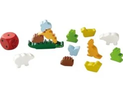 O, o, deze dierenpiramide is werkelijk een heel wankele bedoening! Alleen wie met vingertoppengevoel de dieren behendig op elkaar stapelt, wint het duel.