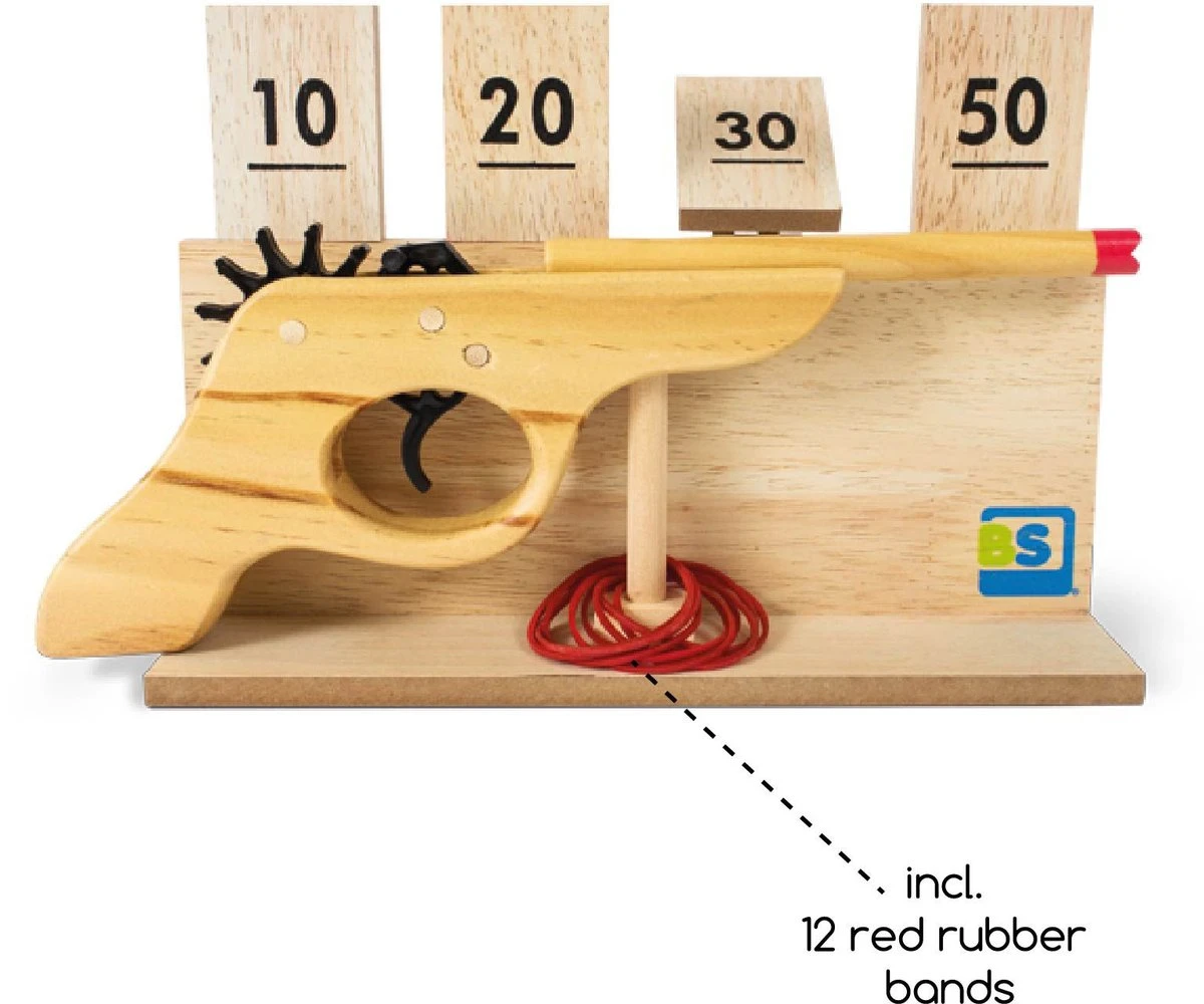 Pistool gemaakt van beukenhout, incl. 12 elastiekjes.