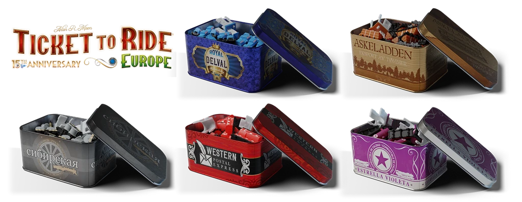Dankzij een extra groot spelbord met nieuwe illustraties, zeer gedetailleerde treintjes en treinstations in prachtige blikjes, maar ook elke bestemmingskaart die ooit verschenen is sinds de eerste uitgave, is dit met recht een unieke jubileumeditie van Ticket to Ride® Europe!