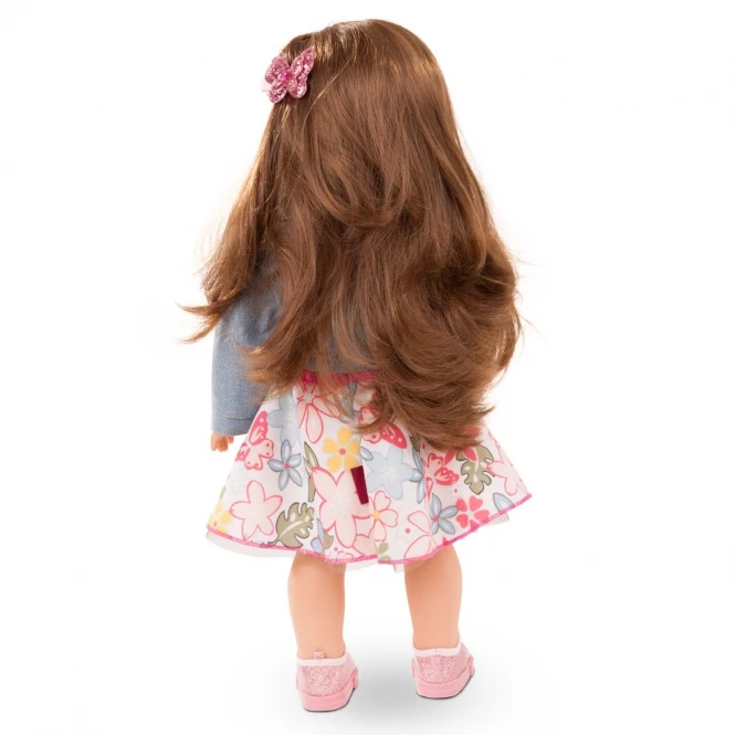 Dit poppenlichaam is gemaakt van stof en gevuld met polyesterwol. Het is nog steeds stevig genoeg om gemakkelijk op te staan. Onze Precious Day Girl Elisabeth is ook volledig beweegbaar en poseable. Voor onze poppen gebruiken we alleen hoogwaardig haar met een natuurlijke uitstraling. Het haar is in het hoofd van de pop genaaid en is zeer duurzaam. Kinderen kunnen het gemakkelijk wassen, stylen en kammen (zie productinformatie). De fantasie van uw kind kent bijna geen grenzen. Elisabeth heeft bruine slaapogen.