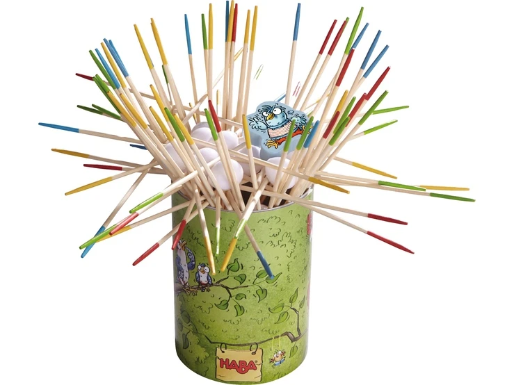 Wie helpt Kiki Koekoek en bouwt een nest van stokjes voor haar eieren? Maar let op: er liggen nog maar nauwelijks geschikte takken op het nest of je moet er al een koekoeksei in leggen. Omdat het nest nog niet helemaal klaar is, kan er al eens wat naar beneden donderen. Alleen met veel fijngevoeligheid en wat geluk slaag je erin je eieren als eerste in het nest te leggen en Kiki Koekoek op haar broedsel te zetten.