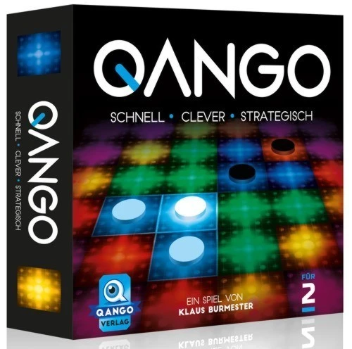 Qango is een snel strategisch bordspel. Probeer op het bord als eerste 3 aansluitende kleuren te bemachtigen, of een vierkant of 5 op een rij te maken. Qango heeft een dubbelzijdig speelbord voor meer mogelijkheden. Een geraffineerd spel dat soms maar 3 minuten duurt. De spelregels zijn bekend binnen enkele minuten. Een spontaan spelletje Β zorgt daarna voor veel plezier, maar speel je een wedstrijd op het hoogste niveau dan brengt het je ook heel veel hoofdbrekens.Wie maakt de beste keuzes; blokkeer je tegenstander en heb tegelijkertijd oog voor je eigen mogelijkheden.