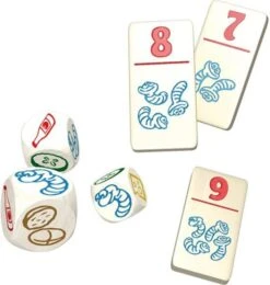 Vereenvoudigde variant van het vlotte dobbelspel Regenwormen.
