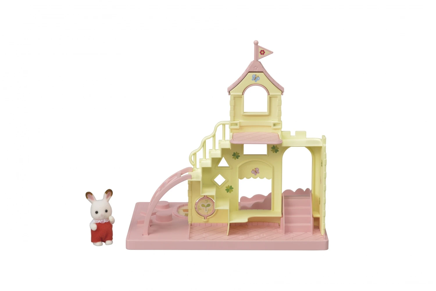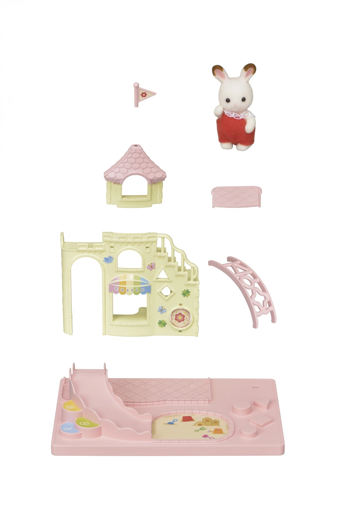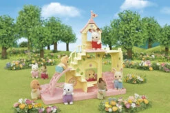 Het Sylvanian Families baby kasteel SF5319 komt als een set met één baby chocoladekonijnfiguur. Deze speelset is meteen klaar voor kinderen om mee te spelen als een product op zichzelf. Het komt inclusief een glijbaan, ladder, zandbak en andere leuke babyspeeltjes.