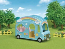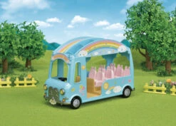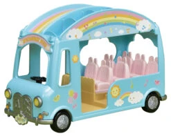Sylvanian Families regenboog babybus SF5317 komt inclusief zitplaatsen met schattige motiefjes binnenin de bus, zoals met een pianoprint of muzieknoten.