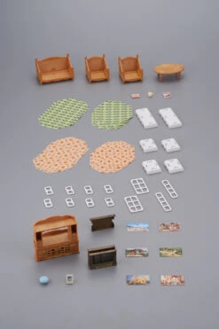 De woonkamerset bevat een fotovel binnenin de tv welke eruit kan worden gehaald en vervangen door een ander om zo het tv-beeld te veranderen. De meegeleverde uitwisselbare materialen voor de bank en fauteuils zorgen voor eenvoudige ontwerpwijzigingen.