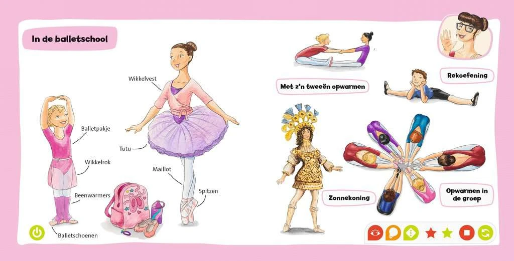 Samen met balletlerares Nini duiken kinderen de wereld in van het ballet, en ervaren wetenswaardigheden over posities, sprongen en oefeningen. Met spannende geluiden en spellen