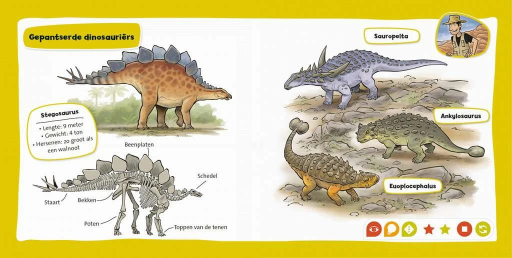 Samen met paleontoloog Floris Fossilus ontdekken kinderen meer dan 30 verschillende soorten Dinosauriërs en komen ze dingen te weten over het leven op Aarde miljoenen jaren geleden. Met spannende geluiden en afwisselende spellen biedt dit boek interactief leerplezier voor thuis en onderweg.