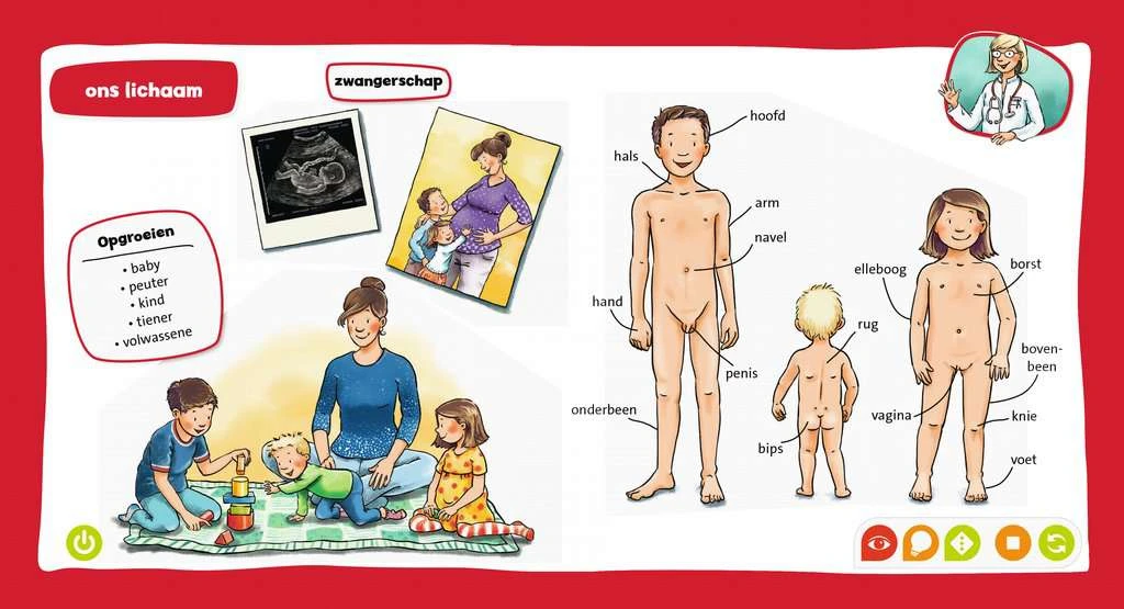 Samen met kinderarts Katja ontdekken kinderen het menselijk lichaam en komen ze dingen te weten over de vijf zintuigen, lichaamsverzorging, botten, spieren en gevoel. Met spannende geluiden en spellen vol afwisseling biedt dit boek interactief leerplezier voor thuis en onderweg.