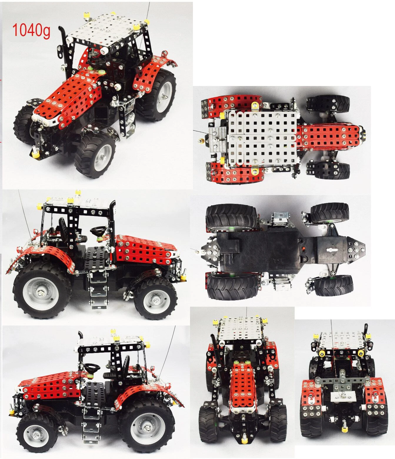 Bouwdoos met 531 onderdelen uit de Tronico Junior serie. Betreft de tractor Massey Ferguson MF5430. De tractor is radiografisch bestuurbaar, kan zowel vooruit- als achteruit- rijden, heeft volledige stuuurfuncties, terreinbanden en een trekhaak